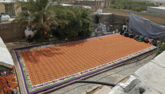 «Este kílim de 7 metros por 15, es decir 105 m2, ha sido elaborado por siete tejedores principales y tres auxiliares de la ciudad de Qirokarzin, en la provincia de Fars», anunció Mohamad Jafar Ebrahimi, jefe del Departamento de Patrimonio Cultural local, citado por la televisión local.