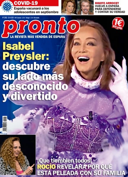 Isabel Preysler ocupa la portada de la revista Pronto tras su espectacular paso por el programa de Antena 3 ¡Mask Singer’. Además la revista revela los secretos de la familia Jurado: Rociíto cuenta por qué su familia está peleada.