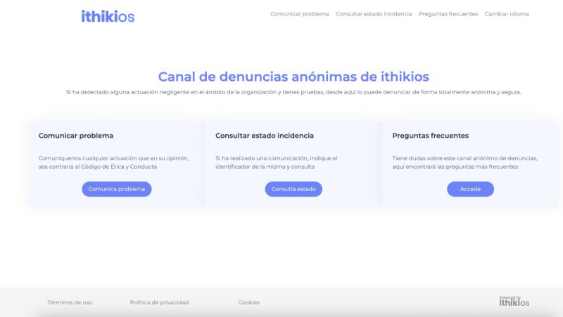 Fruto de dicha necesidad y para aportar una respuesta óptima a las empresas, independientemente de su tamaño, ha surgido ithikios. Se trata de una solución que proporciona canales de denuncias para las organizaciones, en la nube. Entre las características que lo definen se encuentran la sencillez, seguridad y la facilidad de uso. Además, está pensado para pequeñas y medianas organizaciones que tengan como objetivo resolver la necesidad generada de forma eficiente, sin la necesidad de grandes inversiones y con la simplicidad que ofrece una solución SaaS. El canal de alertas de la organización puede ser configurado en horas.