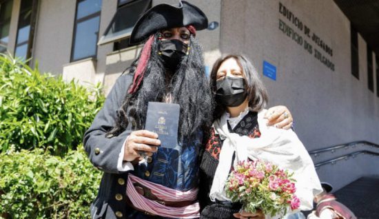La pareja de Vigo a la que semanas atrás le impidieron casarse al ir él vestido de pirata, ha logrado contraer nupcias en el Registro Civil de Vigo, después de que él (que ha entrado a los juzgados con el mismo disfraz) se quitó la peluca y el sombrero que formaba parte del atuendo para facilitar su identificación.