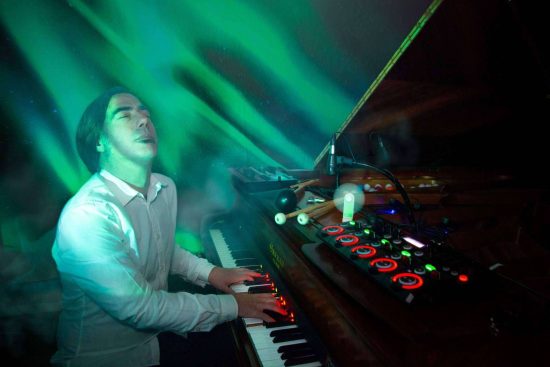 A través de un novedoso sistema de sensores ópticos colocado en las teclas del piano JJ Machuca conecta el piano de cola a un ordenador para sumar al sonido del piano infinidad de sonidos y convertirlo así en un sintetizador o multi-instrumento.