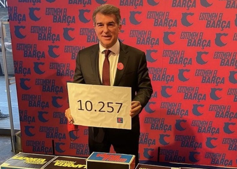 Laporta entrega 8.000 firmas más de las necesarias (2.257) y muchas más firmas que las logradas, en la misma fase, en los procesos electorales de 2003 (5.725), cuando ganó, y de 2015 (4.272), cuando perdió frente a Bartomeu.