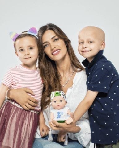 El pañuelo en la cabeza que llevan los Baby Pelones ha sido diseñado de forma solidaria por embajadores de la fundación como Laura Pausini, David Bisbal, Alejandro Sanz, Richard Gere, Shakira, Ricky Martin, Paula Echevarría… además de los peques María, Jorge, Teresa y Leire.