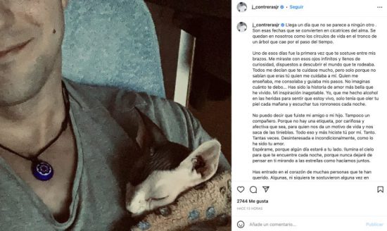 «Llega un día que no se parece a ningún otro» comenzaba diciendo Julián Contreras a través de una publicación en su perfil de Instagram y continuaba diciendo que «son esas fechas que se convierten en cicatrices del alma». Hace unos días, el hijo de Carmina Ordóñez pedía ayuda económica a través de un storie tras haber recibido el peor de los diagnósticos para su gato Elliot.
