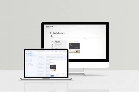 Las tarjetas de visita digitales para empresas realizadas por Know.ee cuentan con un módulo específico para la gestión de firmas de correo en un solo lugar. Estas firmas pueden ser actualizadas las veces que el usuario desee, y también personalizadas en base a sus necesidades e intereses. Estas están incorporadas en un único espacio de manera digital, evitando que los negocios gasten tiempo y dinero administrándolas para diferentes correos electrónicos. Dado que esta administración es homogénea, se combina a la perfección con la digitalización de tareas manuales. Una firma de correo dinámica y flexible genera un mayor impacto en los destinatarios.