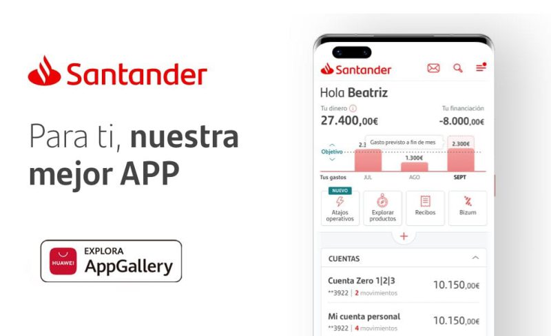 “Poder anunciar la llegada de una aplicación de banca como Santander a nuestra tienda de aplicaciones es un orgullo y un reflejo de todo el trabajo que estamos llevando a cabo de la mano de nuestros partners para poder ofrecer a nuestros usuarios una experiencia completa y de calidad a través de nuestros dispositivos”, afirma Ramiro Larragán, Director de Marketing de Huawei España. “Esta nueva incorporación es un hito que se suma a las que hemos anunciado recientemente dentro de la categoría finanzas; una de las más demandadas por parte de nuestros usuarios y de las que mayor crecimiento está experimentando en los últimos meses”.