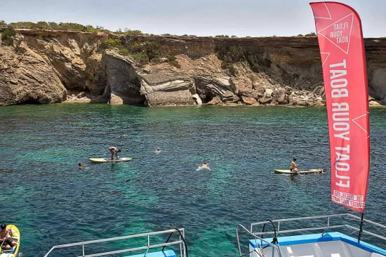 En este entorno privilegiado, Float Your Boat ofrece alternativas que combinan deporte y turismo, adaptadas a todas las edades y preferencias. Esta empresa, con base en San Antonio, organiza excursiones en barco que permiten disfrutar de las playas más icónicas de la isla como Cala Bassa y Cala Conta, entre otras, mientras se practican estas disciplinas acuáticas.