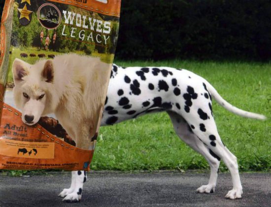 En la marca A., los cereales son reemplazados por guisantes, lentejas, y otras legumbres. Cuando se analiza la alimentación natural de los lobos, se puede observar que consumen gran cantidad de granos integrales tomándolos predigeridos de las vísceras de sus presas, pero en las grandes praderas, donde abundan las gramíneas (cereales) no hay leguminosas, por lo que el reemplazo de los cereales integrales por leguminosas, suena más a una moda que al resultado de investigaciones. Y efectivamente, cuando se profundiza más, se descubre que no existe ningún estudio científico serio que avale la idea de quitar granos y reemplazarlos por guisantes, sino todo lo contrario.