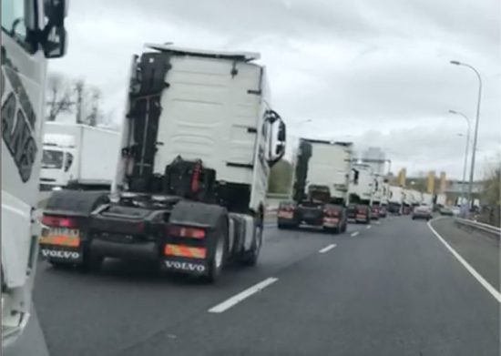 Un vídeo de una larga fila de camiones se está viraliando en las redes sociales.