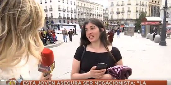 Buscando la opinión de los madrileños sobre las últimas declaraciones de Miguel Bosé, @aran_ese se ha encontrado a esta joven que asegura ser negacionista.