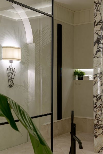 Al-Maa recrea un espacio de baño donde el cuidado personal adquiere todo el protagonismo. Para ello se han actualizado todos estos conceptos de purificación y relajación, apoyándonos en los materiales naturales y en los tonos neutros y, sobre todo, en la iluminación tenue y regulada, creando diferentes escenas, ayudados por la tecnología actual.