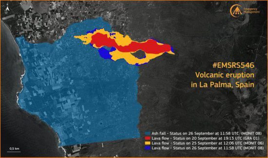 Además, según el último muestreo de Copérnicus que data de las 06.50 horas del 27 de septiembre, la lava también se ha llevado por delante 22,2 kilómetros de carretera de la isla.