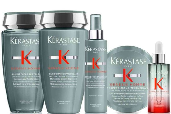 Una de las ventajas de comprar los productos capilares de la línea Genesis Homme de la marca Kérastase en Llarcó es que la tienda ofrece un descuento del 20 % en todos los artículos. En ese sentido, una de las opciones es adquirir el pack de 4 productos Chute & Affinement a 110, 64 €, que incluye un champú potenciador del grosor, un espray potenciador de fuerza, un serum para cabellos debilitados y una cera para peinado.