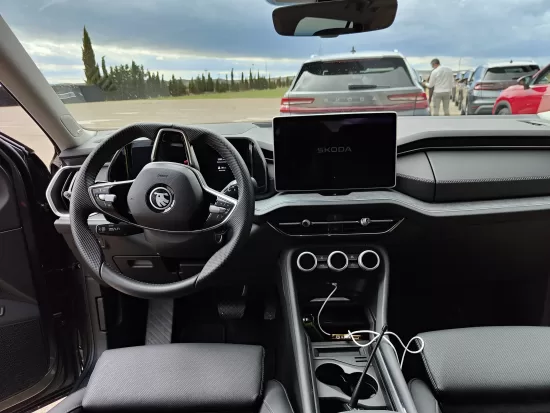 Al igual que la última generación de la berlina de representación de la marca checa, el Superb, el Kodiaq también adopta un nuevo concepto de interior basado en Design Selections, que debutan en el SUV de gran tamaño de Škoda, con numerosos materiales sostenibles. Además, el Kodiaq también presenta un nuevo concepto de interior. La pantalla de infoentretenimiento es ahora independiente, con una diagonal de pantalla de hasta 13 pulgadas. Por primera vez, está disponible opcionalmente un head-up display. La palanca selectora del cambio está ahora montada en la columna de dirección, lo que confiere a la consola central un aspecto muy limpio y ordenado al tiempo que añade espacio adicional. El sistema de control por voz es más avanzado, gracias a la integración del chatbot ChatGPT basado en IA.