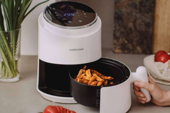 Estos pequeños hornos fríen todo tipo de alimentos por la fuerza del aire que circula a su alrededor, mediante la activación de un ventilador interno. Los mismos se comercializan junto a batidoras de vaso, para triturar alimentos como frutas y verduras conservando su fibra, en tiendas especializadas como Mellerware.