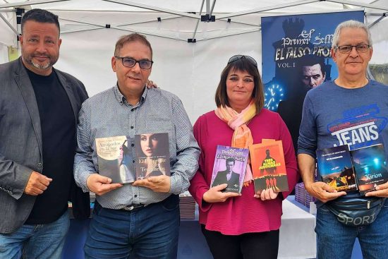 En la Plaza Real estuvieron participando los autores Carmen Martin Moreno y David Moragas Lomas, asi como Jose Luis Revidiego Ocaña, Angel J. García y Javier Caparros, escritores amigos de la editorial.