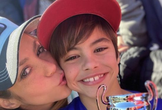 En las imágenes se muestra a Shakira animando a sus pequeños a pie de campo, ubicada justo al frente de una grada donde estaba el propio Piqué.