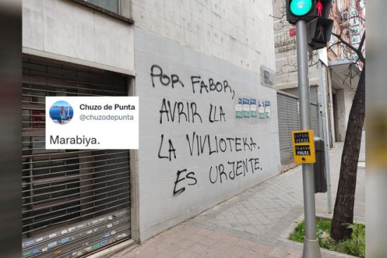 Lo llamativo del mensaje ha atraído, como no, a los tuiteros, que han llenado las respuestas de faltas de ortografía para evidenciar la necesidad de las bibliotecas. El Banksy madrileño ha dado un patadón a la RAE y ha provocado otros más, pero con un fin reivindicativo.