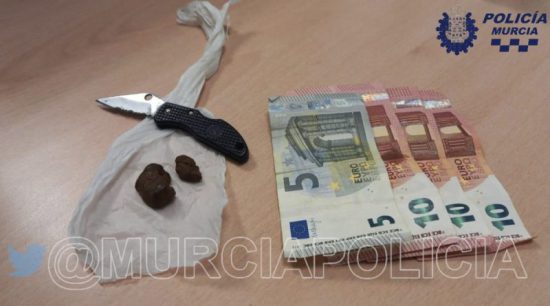 «El lunes se produjeron dos intervenciones en las que los detenidos portaban diferentes cantidades de sustancias estupefacientes preparadas para su venta,así como diversas cantidades de fraccionado», así anuncia el miércoles la Policía Local de Murcia su última operación anti-droga.