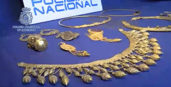 La Policía Nacional ha informado este lunes de la intervención de 11 joyas de oro pertenecientes al patrimonio histórico de Ucrania, valoradas en más de 60 millones de euros. El Cuerpo ha detenido a cinco personas (tres de ellas españoles y otras dos personas de nacionalidad ucraniana) por la presunta comisión de un delito de blanqueo de capitales, desarticulando así una red criminal dedicada al tráfico de bienes culturales ucranianos.