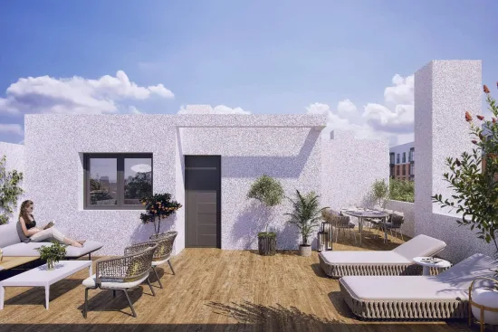 El Jardín de las Suertes es una obra nueva de exclusivo diseño con producción de calefacción, refrigeración y agua caliente sanitaria mediante sistemas de aerotermia y suelo radiante-refrescante. También cuenta con cubierta plana visitable, fachadas revestidas de piedra caliza y planta alta mediante sistema monocapa.