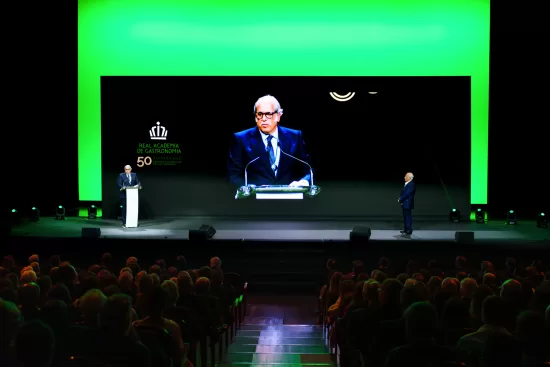 “Los Premios Nacionales de Gastronomía llevan 50 años siendo testigos de la transformación del panorama culinario español, reflejando la capacidad de nuestra gastronomía para adaptarse, reinventarse y sorprender al mundo. Y por ello, en este año tan especial para nosotros, la Real Academia de Gastronomía dedica esta gala a todas esas personas y empresas que han levantado y levantan día a día la gastronomía española. A todos, va nuestro más profundo reconocimiento.”