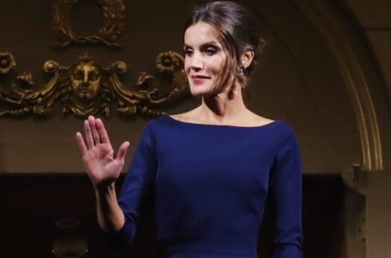 La protagonista de la noche era, sin duda, la Reina Letizia, que escogía para la ocasión un vestido de color azul marino de la marca Miphai con corte desigual y con un detalle muy especial: mostraba su espalda. Demostrando que se siente segura de su cuerpo, se atrevía con este original vestido que combinaba con unos pendientes a estrenar que lucía gracias a su peinado recogido.