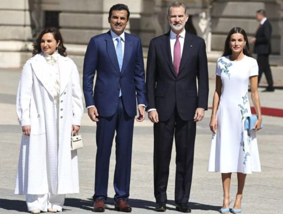 Así, este martes los monarcas han recibido con honores en el Patio de Armas del Palacio Real al Emir de Catar, Tamim bin Hamad Al Thani, en su primera visita de Estado a un país europeo desde que asumió el país del Emirato Árabe en 2013. Un viaje muy especial que pretende reforzar los lazos entre ambos países, y en el que el Emir ha estado acompañado por la primera de sus tres esposas, Jawaher Bint Hamad Bin Suhaim Al Thani, que hoy ha debutado, con un resultado discreto, en un acto internacional.