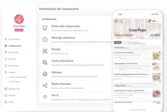 Menu.es permite revolucionar la experiencia de los clientes en un restaurante con un simple código QR. Desde la gestión de menús hasta la recepción de pedidos y pagos, Menu.es ofrece una solución completa y eficiente para restaurantes de todos los tamaños. Menu.es menciona que puede transformar un negocio y llevarlo al siguiente nivel.