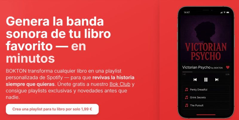 Nace BOKTON, una aplicación pionera que une literatura y música gracias a la inteligencia artificial. Con un funcionamiento sencillo —por solo 1,99 €— los lectores pueden solicitar en cuestión de minutos una lista de reproducción de música única en Spotify inspirada en el libro que están leyendo.