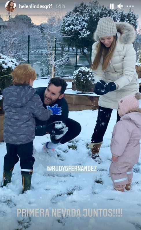 E jugador del Real Madrid de baloncesto Rudy Fernández y la modelo Helen Lindes tampoco quisieron perderse el manto blanco.La catalana subió varias historias a su Instagram de ese momento tan entrañable en familia.