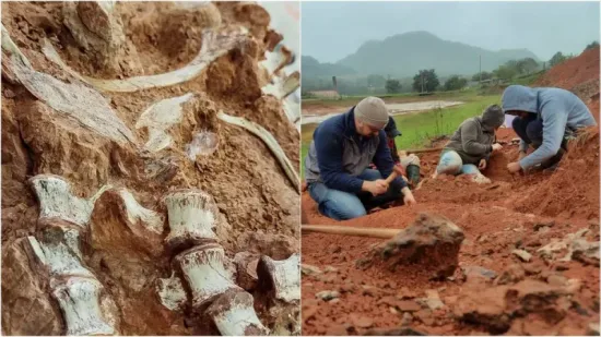Según explicó a EFE Rodrigo Müller, paleontólogo que forma parte del grupo, los restos del dinosaurio quedaron expuestos tras las fuertes lluvias que causaron unas devastadoras inundaciones en todo Rio Grande do Sul.