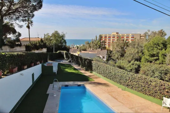 La primera consiste en un adosado de 200 m² construidos que cuenta con 4 dormitorios, 3 baños y un garaje. La compañía explica que se trata de un chalet con dos viviendas independientes en una. Esta característica ofrece la oportunidad de alquilar cada vivienda por separado. Además, la propiedad se ubica a solo 300 metros de la playa y en una esquina con vistas al mar.
