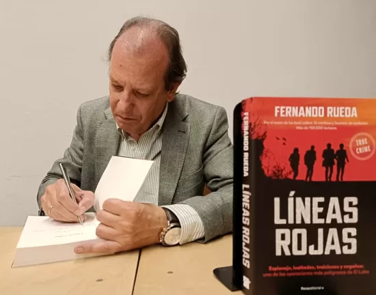 Lo descrito en «Líneas Rojas», subraya Rueda, «fue el primer caso que le llevó fuera de las fronteras de España» y por la novela desfilan «estos espías rodeados de agentes que quieren acabar con ellos pertenecientes al Mossad y al espionaje francés».