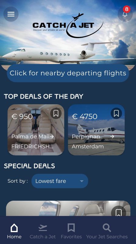 La nueva app Catch A Jet permite reservar asientos en jet privado que de otra forma volarían vacíos, ofreciendo tarifas hasta un 75% más bajas a las existentes en idénticos vuelos en jet. Actualmente, se operan unos 300.000 vuelos anuales en jet privado sin pasajeros desde y hacia Europa con el fin de reubicar los aviones donde se necesitan. Madrid, Barcelona, Ibiza y Mallorca están entre las 20 rutas más operadas en Europa