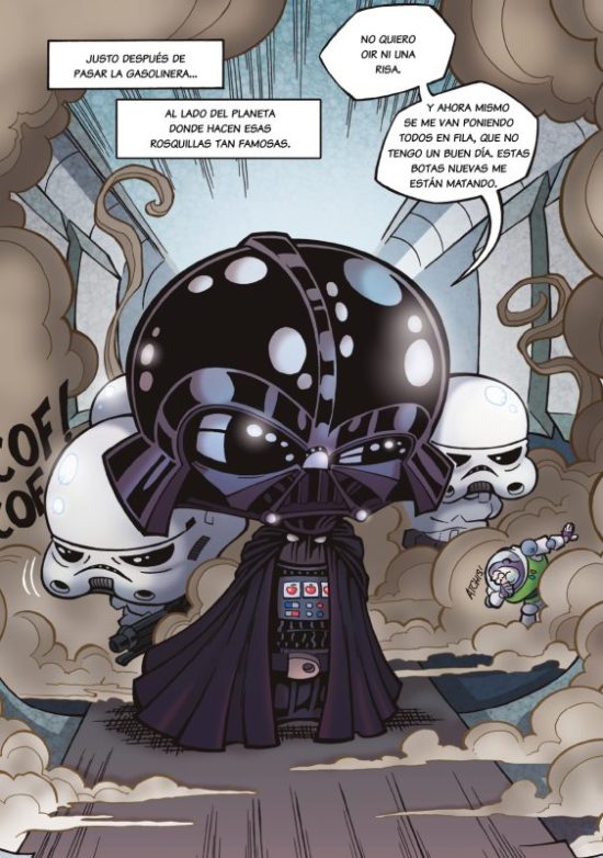 Este tomo de los cabezones hace un buen repaso a las tres primeras películas de la saga, que muy por encima y en poco más de 80 hojas nos resume bien las originales. Eso sí, aquí vamos a tener gags prácticamente a cada página. También los dibujos están llenos de detalles y pequeños easter eggs para los que tengan más paciencia y aparte del texto se fijen en las cosas pequeñas que no están en el centro de la viñeta.