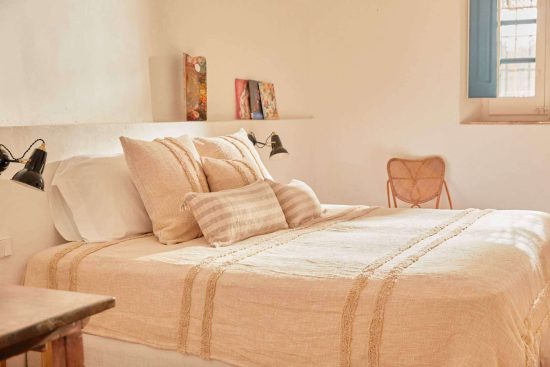 Los cojines decorativos para cama de Calma House son de algodón y lino