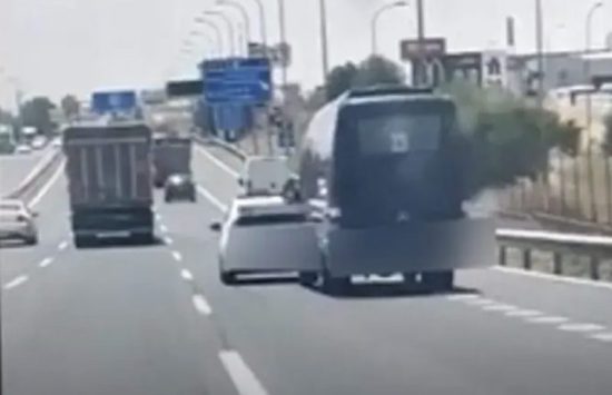 Una vez realizado el adelantamiento, el turismo comenzó a realizar maniobras bruscas de frenado y a interponerse en la trayectoria del microbús en varias ocasiones. Finalmente, el microbús acaba colisionando con el turismo en la incorporación a una glorieta que da acceso a la carretera M-404.