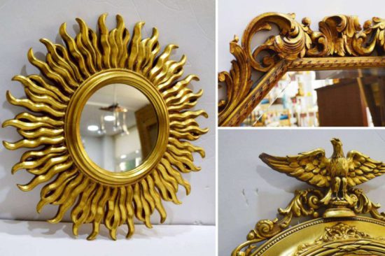 En el stock de Galería 34 se pueden apreciar espejos vintage redondos, rectangulares, cuadrados y ovalados. Sus estilos pueden ser barroco, sol metálico, Napoleón III, doble hoja, con cornucopias doradas, estilo veneciano o estilo italiano. Lo especial de sus espejos es que son únicos, son espejo vintage que han perdurado al tiempo y ahora se usan en las grandes decoraciones de espacios lujosos y en viviendas con estilo.