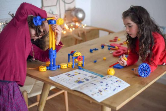 Estos juguetes están compuestos por piezas como cilindros o varillas, y otras más complejas como engranajes, ruedas, articulaciones y poleas para dar movimiento. El objetivo es estimular la motricidad fina, el pensamiento a través del ensayo y error incentivando a los niños a pensar y cuestionarse cómo funcionan las cosas y por qué lo hacen de esa manera.