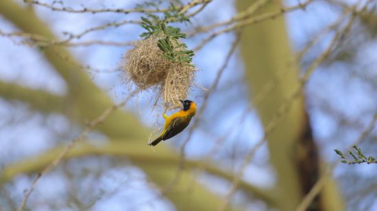 Los pájaros tejedores son una familia de 118 especies de pájaros cantores que viven principalmente en el África subsahariana y se llaman así por la elaborada construcción de sus nidos.