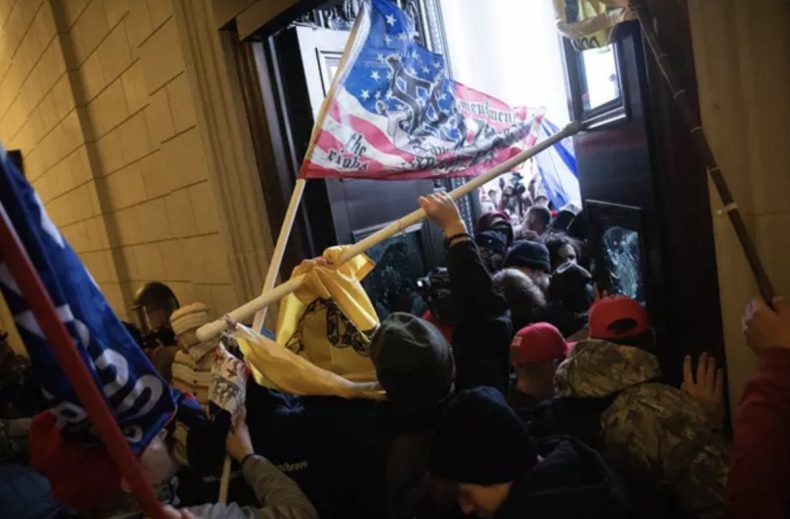 Dos horas después del discurso de Trump, cientos de manifestantes han atravesado las barreras policiales e irrumpido en el Capitolio en el mismo momento que los senadores debatían la votación que certificaba la victoria de Biden. Sin intervención alguna de las autoridades, manifestantes — muchos de ellos disfrazados –, han entrado en las instalaciones de la sede del Congreso norteamericano, entre ellas la oficina de la líder de la mayoría demócrata en la Cámara de Representantes, Nancy Pelosi. La Policía ha lanzado bombas de humo a los asaltantes, sin éxito, mientras los senadores se veían obligados a interrumpir los procedimientos.
