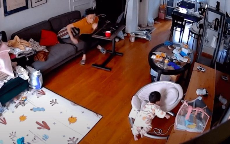 Un padre con muy buenos reflejos logró atrapar a su bebé antes de que se cayera de la mecedora. El suceso ocurrió en el domicilio de la familia en la ciudad de Hangzhou, China, y fue grabado por una cámara de seguridad de la casa.