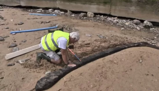 Urteaga ha detallado que la labor diaria comenzaba con la ayuda de una pequeña excavadora «para abrir canales de drenaje y favorecer así la evacuación con motobombas de las aguas en la zona de trabajo. Se instalaba el vallado y, en cuanto se retiraban las aguas, comenzaba la extracción a contrarreloj de los depósitos de arena que cubrían el pecio».