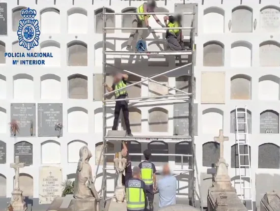 Agentes del Equipo de Desactivación de Explosivos y NRBQ (Tedax) de la Policía Nacional procedieron la pasada semana a la desactivación de un artefacto que estaba incrustado, a varios metros de altura, en la pared de un nicho del cementerio de San Justo, en el distrito madrileño de Carabanchel.