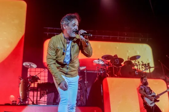 En pleno delirio del público, que seguía cantando y bailando en esta primera pausa del concierto como si la banda siguiera en el escenario, los primeros compases de ‘Incendios de Nieve’ han vuelto a emocionar a los asistentes, totalmente entregados con la aparición sobre el escenario de Leiva (el artista invitado en este concierto), una actuación que ha derretido a todo el auditorio, iluminado de color rojo.