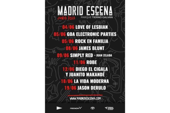 Estas actividades se englobarán a lo largo de todo el mes de junio junto a un gran cartel internacional protagonizado por nombres como Jason Derulo, James Blunt o Simply Red. Además, Madrid Escena también contará con los espectáculos de grandes artistas nacionales de la talla de Love of Lesbian, Robe Iniesta, El Cigala o Juanito Makandé.