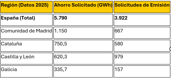 Desde la puesta en marcha de los CAE, España acumula un total de 7.710 GWh de ahorro energético. El sistema ha gestionado 4.624 solicitudes de emisiones, dato que confirma que el mercado de la eficiencia energética es ya una realidad plenamente operativa.