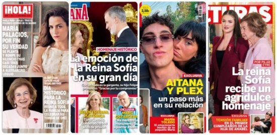 ¡Hola! trae las primeras declaraciones de María Palacios, quien lleva al lado de Alessandro Lequio camino de treinta años. Sobre su relación con el defenestrado colaborador de Telecinco, dice: “Yo no soy víctima y mucho menos, cómplice”. La reina Sofía recibe a toda la familia para celebrar la concesión del Toisón de Oro y señala la revista que el rey Juan Carlos viajó desde Abu Dabi. Sara Verdasco y Juan Carmona presentan a sus tres hijas en un reportaje fotográfico.