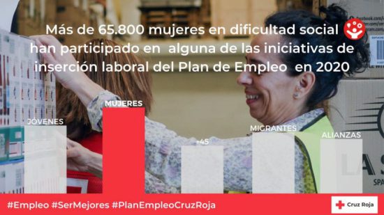 Con esta intervención se logró que más de 100.000 personas participaran en el ‘Plan de Empleo’ de Cruz Roja, a través del cual 21.000 pudieron acceder a un empleo durante 2020.